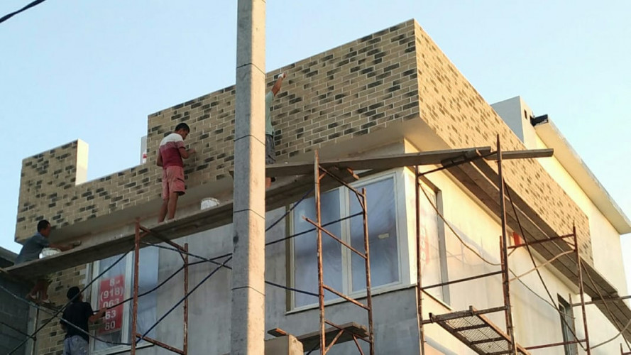 Гибкий кирпич отдельно и на сетке для наружной и внутренней отделки не создаст большую нагрузку на фасад, так как весят в среднем 1,5кг м2. Внешняя облицовка дома нашей плиткой, позволяет великолепно обшить и укрепить ослабленные фасады из старых кирпичей, дерево, бетона, газоблока, газобетона, газосиликата, силикатного кирпича, каркасного дома — Канадская технология и т.д., они отлично режутся и гнутся. При этом, они прочные и легкие.