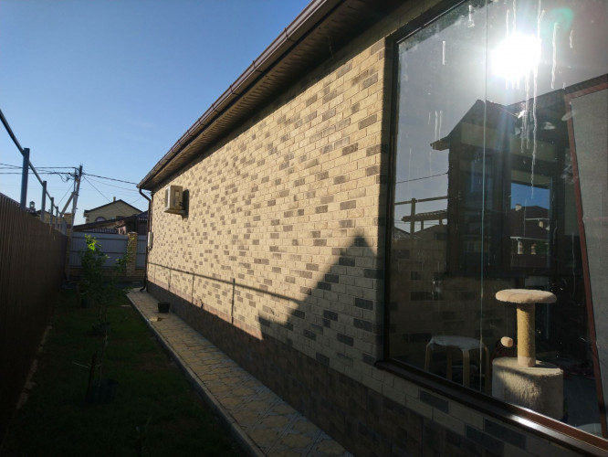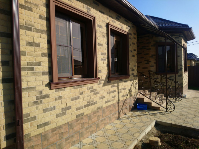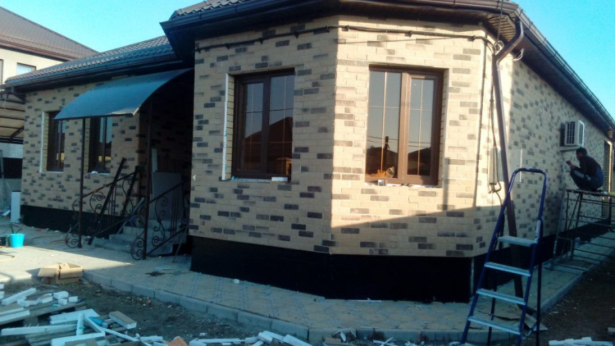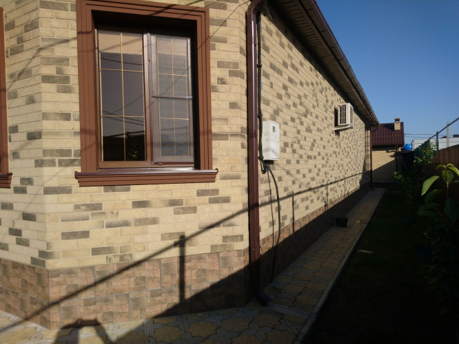 При выполнении работ по облицовке дома в г. Краснодаре, были использованы фасадные панели с фактурой под Клинкер «Леонардо »
