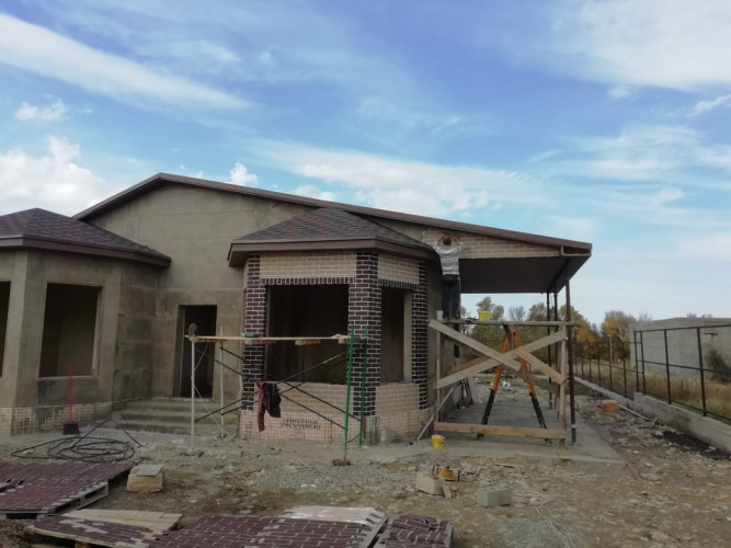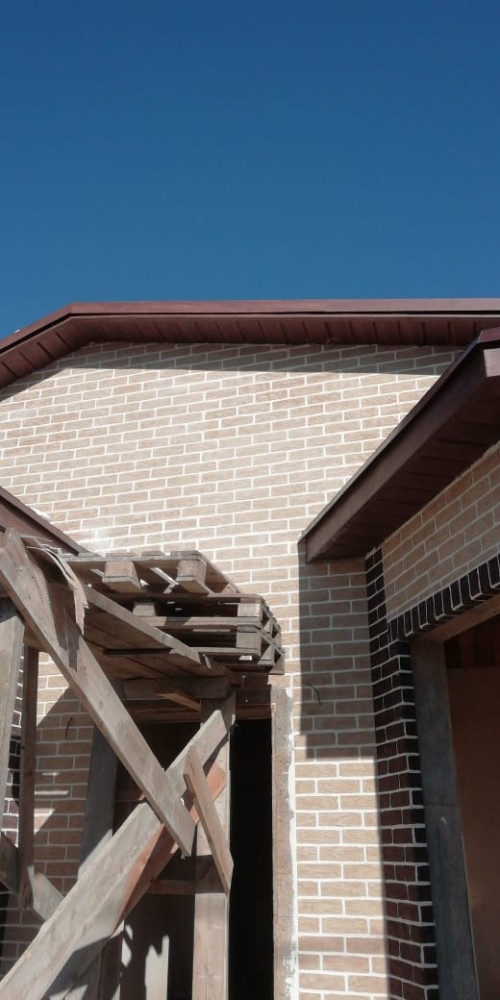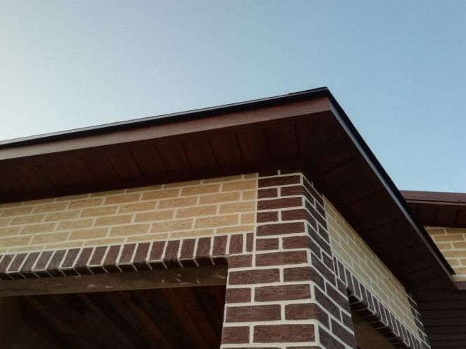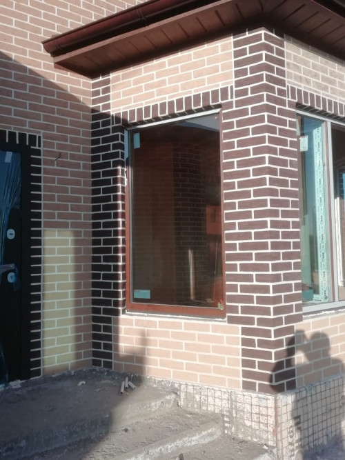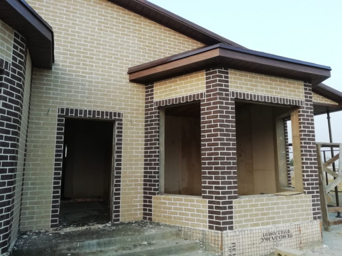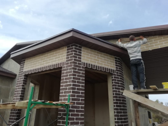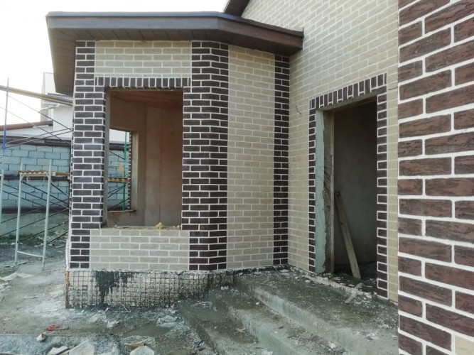 При выполнении работ по декоративному оформлению дома в г. Ставрополе были использованы кирпич на сетке "Леонардо" и углы "Рим-К"