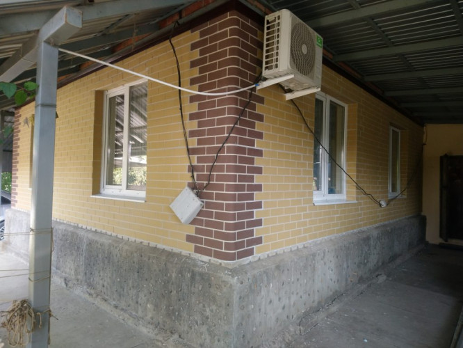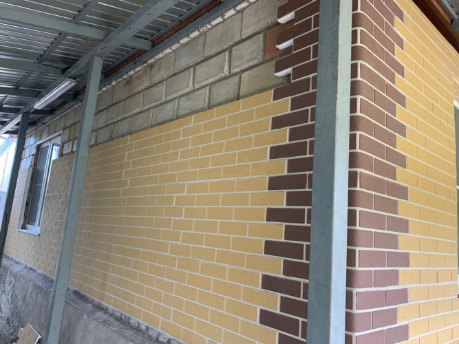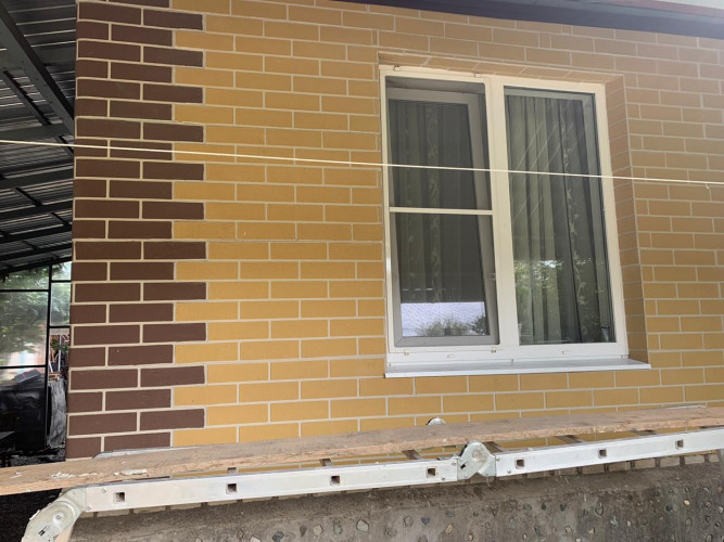 При выполнении работ по утеплению дома в ст.Елизаветинская были использованы фасадные панели под кирпич СВ-270 и углы СВ-180.